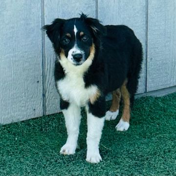 This is a beautiful black tri female with beautiful brown eyes. She would be a perfect pet . She is ready to go. We have many delivery options. She is doing well on a leash.