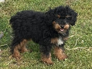 This is an adorable black phantom poodle male puppy. He is priced as a pet If you want breeding rights that is an option. Let me know if you are interested in him